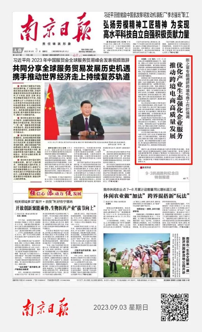 9月1日,市長陳之常專題調研跨境電商工作。他強調,要深入學習貫徹習近平總書記考察江蘇重要講話精神,著力塑造開放型經濟新優勢,搶抓跨境電商發展新賽道,優化產業生態,強化企業服務,加快培育規模化、專業化跨境電商企業,推動跨境電商高質量發展。市委常委、江北新區黨工委書記楊學鵬參加。