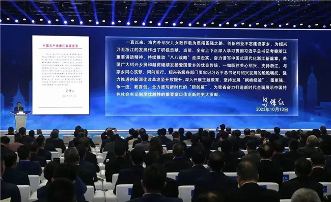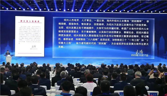 11月11日,以“同譜膽劍篇·同心謀發展”為主題的2023紹興發展大會隆重舉行。近千名來自海內外科教界、工商界、金融界等精英翹楚、知名人士、紹籍鄉賢代表齊聚紹興,暢敘鄉情友情,共話美好未來。