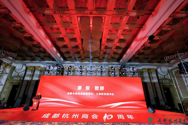 成都市工商聯、民政局,杭州市工商聯蒞臨指導,成都杭州兩地工商聯、天府新區商會等10家成都友好商會、上海杭州商會等5家異地商會,浙杭籍知名企業代表等500余人出席慶典活動。