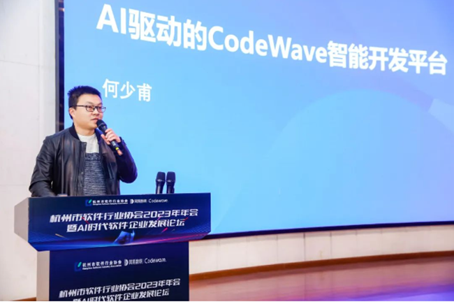 隨后,會上開展了主題為“AI時代,軟件企業發展新思考”的論壇環節,浙商總會數字資產及交易委員會執行主席兼專家委員會主任張旭光主持,網易(杭州)網絡有限公司低代碼產品線總裁陳諤、信雅達科技股份有限公司董事長耿俊嶺 、阿里云技術戰略研究室主任蘇中 、釘釘副總裁林鋒 、英國EGG孵化器CFO,中科頤高億極聯席董事陸城寬分別發表了各自對于AI時代企業發展的思考與見解。