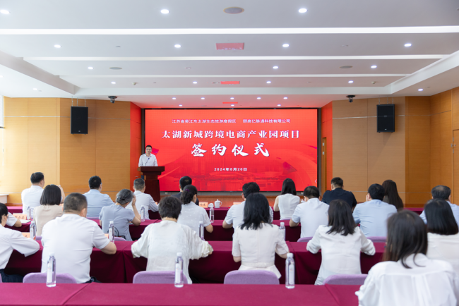 8月20日,太湖新城跨境電商產業園項目簽約正式簽約。副區長方勇,頤高集團董事長翁南道,東太湖度假區管理辦黨委書記、主任蔡建忠出席活動并見證簽約,頤高集團總裁助理、億脈通科技總裁肖慶,東太湖度假區管理辦黨委委員、副主任吳誌代表雙方簽約。吳江區、東太湖度假區相關部門負責同志及頤高集團相關負責人參加活動。