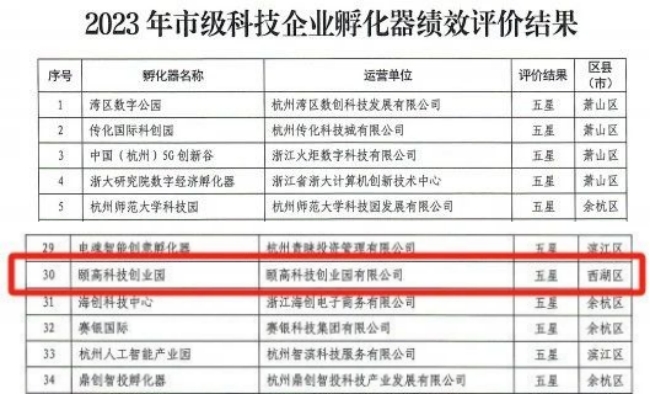 近日,杭州市科技局發布了《關于公布2023年市級科技企業孵化器績效評價結果的通知》,對市級科技企業孵化器開展了2023年績效評價工作。其中,頤高科技創業園評價結果為優秀,評定為五星等次,在參與考核的305家孵化器中排名靠前。