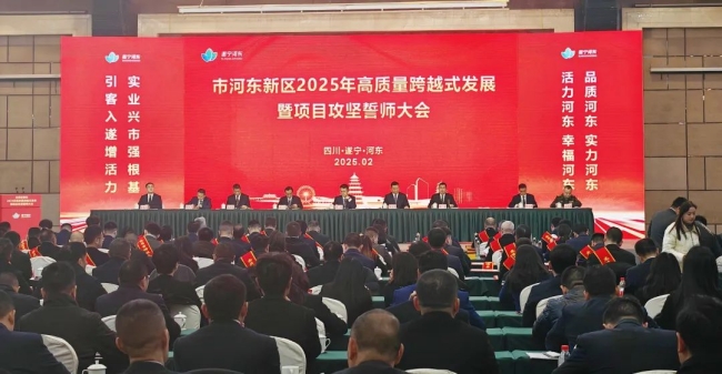 2月21日,遂寧市河東新區2025年高質量跨越式發展暨項目攻堅誓師大會召開。遂寧市委副書記景臨同志做出重要指示,市河東新區黨工委書記潘化榮安排部署2025年工作,市河東新區黨工委副書記、管委會主任張寬主持會議。