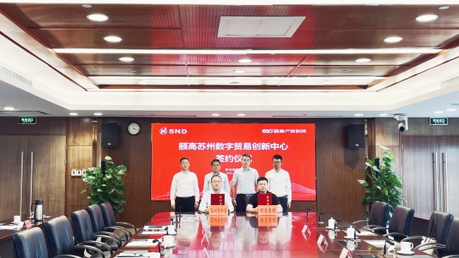 6月5日,蘇州高新區管委會與頤高產城科技正式簽約“頤高蘇州數字貿易創新中心”項目合作協議。蘇州國家高新技術產業開發區黨工委副書記、虎丘區區長吳琦,區領導楊亮,頤高集團副總裁、頤高產城科技總裁黃濤,頤高產城科技副總裁武文杰等出席簽約儀式。項目將聚焦數字貿易跨境電商產業核心需求,著力引進海外倉、國際物流、數字營銷、知識產權等上下游全鏈條服務企業,致力于打造長三角跨境貿易數字化創新高地,為高新區跨境電商產業強鏈補鏈注入新動能。