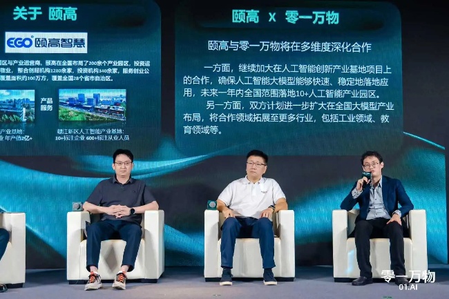 隨后,在沈鵬飛主持的“共贏生態”圓桌論壇上。行業生態伙伴金揚與四位生態伙伴代表共同展開深度對話。金揚表示,在AI時代,產業園區是技術賦能實體經濟的最佳試驗場和應用場。頤高集團深耕產業園區三十年,擁有覆蓋全國的200余個產業園區,落地有贛江新區人工智能產業基地、沈陽人工智能產業園等多個標桿項目,具備深厚的資源積累與實戰經驗。我們選擇與零一萬物合作,正是看中其領先的萬智2.0平臺技術實力和對政企場景需求的深刻理解。作為生態共建伙伴,頤高將致力于把零一萬物先進的AI大模型能力注入到頤高運營的各大產業園區中。