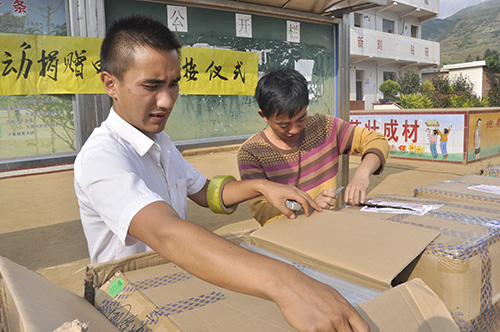 第一批19臺二手電腦分別寄往貴州彝族苗族回族自治縣的四所小學、甘肅省白銀市會寧縣老君鄉謝梗小學供孩子們學習