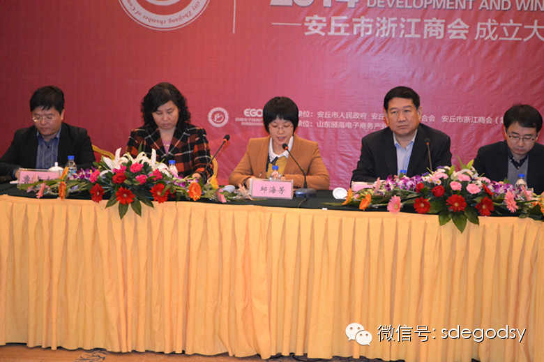 12月26日上午10時,安丘浙江商會成立大會暨第一次會員代表大會在安丘新東方大酒店隆重舉行。安丘市人民政府副市長邱海芳出席大會并發表重要講話,安丘市政協副主席、市委統戰部部長于慶滿,安丘市統戰部副部長、市工商聯黨組書記、第一副主席于明蘭也出席了本次活動。