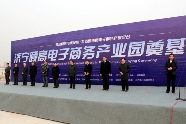 濟寧國際電子商務產業園位于山東省濟寧嘉祥縣,占地170畝,總投資15億元,是頤高集團在濟寧地區的首個集特色產業、電子商務、商貿物流、農村電商為一體的大型O2O產業園區。本次奠基儀式及“互聯、交融”——2014中國(濟寧·嘉祥)電子商務高峰論壇的隆重舉行,標志著濟寧頤高電子商務產業園正式啟動,對濟寧市電子商務與縣域經濟的發展具有重要意義。