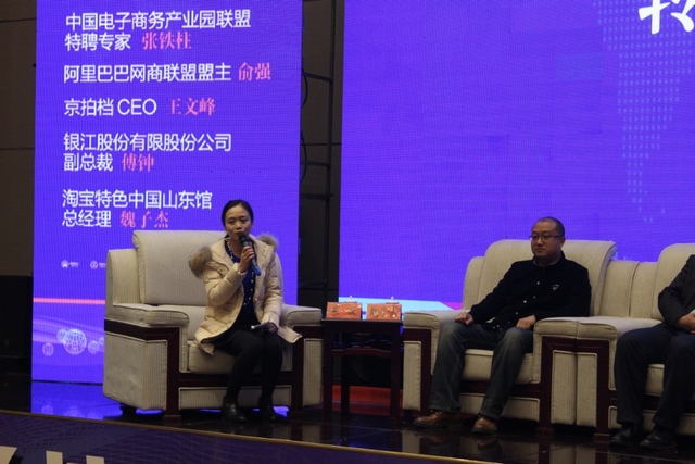 最后,阿里巴巴網商聯盟盟主俞強、京拍檔CEO 王文峰、銀江股份有限公司副總裁傅鐘、中國電子商務產業園聯盟特聘專家張鐵柱、淘寶特色中國山東館總經理魏子杰五位嘉賓就《電子商務—中國縣域經濟轉型升級催化劑》展開深入對話,現場觀點碰撞,迎來陣陣掌聲。