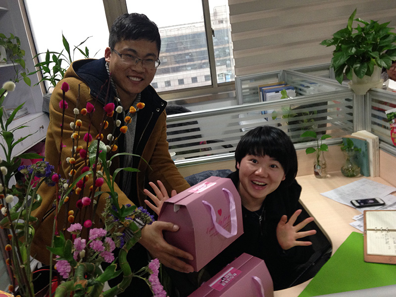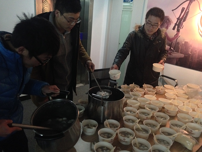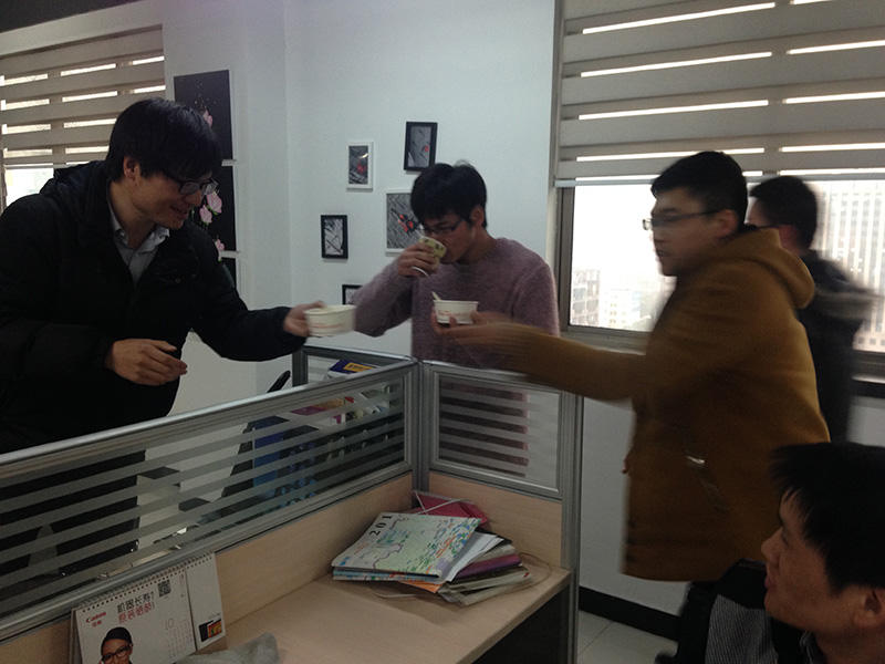 貼心暖男為大伙送上熱騰騰的元宵,暖心的同時還有驚喜,有部分幸運小伙伴吃到了特殊餡料的元宵,拿到了綠色小盆栽。為了不錯過對頤高女神的祝福,暖男們提前為女神過節,親手送上禮物,提前送祝女神節日快樂。元宵節恰逢大雪,但頤高辦公區內洋溢著暖暖的節日氣氛。
