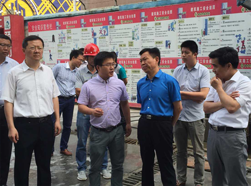 7月2日上午,淮安市清河區區委四套領導班子及街道相關工作人員來到淮安頤高廣場施工現場視察,淮安頤高廣場總經理陳閃閃陪同視察。