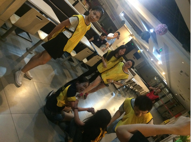 配對后的情侶平均分成兩組,首先進行了團隊賽:“畫畫傳遞猜詞”“潑水or鍋蓋”。所有人團隊榮譽感爆棚,紛紛積極參與當中,尤其是“潑水or鍋蓋”游戲,笑點不斷:有剪刀石頭布輸了卻莫名拿起水潑對方的、有迅速拿起鍋蓋卻依舊被潑了一臉水的......情侶游戲——疊撲克,情侶兩人分別出一只手完成,默契感油然而生。