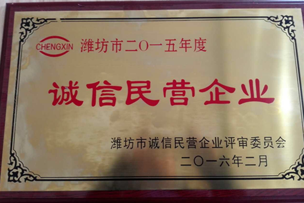 在活動中,濰坊市誠信民營企業評審委員會授予濰坊頤高國際商貿城“濰坊市2015年度誠信民營企業”的光榮稱號。