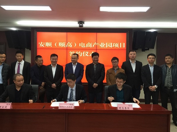 4月1日,頤高集團電商園項目——安順(頤高)電子商務產業園在貴州安順市正式簽約落地。在安順市委常委、西秀區委書記郭偉誼,合力地產董事長周湘武,頤高集團董事長翁南道共同見證下,西秀區副區長徐杰、合力地產總經理李林法以及頤高集團副總裁顧鵬正式簽署安順頤高電商園項目投資協議。