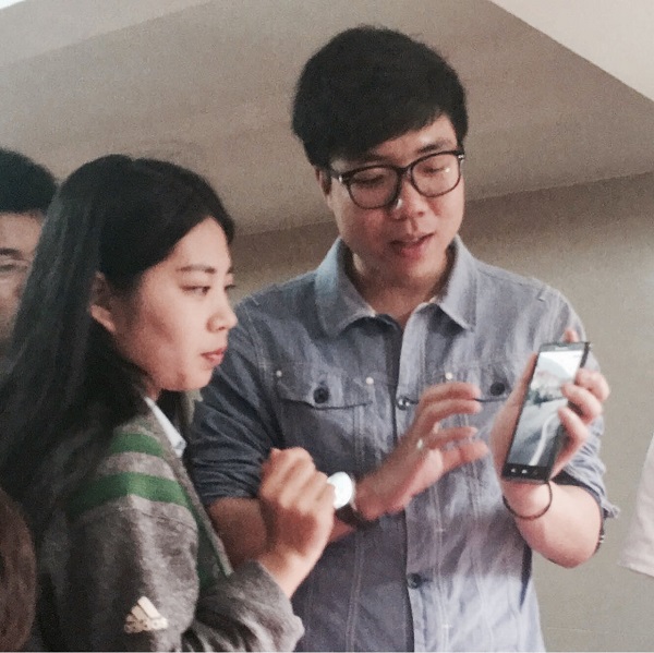 “這座山是v字型的,這樣拍更好看。”“可以利用雨傘做框架拍攝山區后面的花草。”“利用柳枝作為前景可以拍的更有意境。”休息室里,兩位攝影老師重點講解了幾張典型的攝影作品,深入淺出地講解著如何運用光線構圖、環境觀察、意境營造、表達主題、后期app處理等攝影技巧。