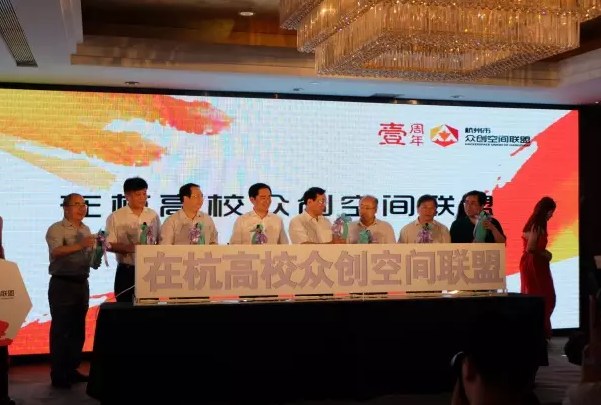 杭州市市長張鴻銘、浙江省科技廳廳長周國輝、浙江大學副校長應義斌、浙江財經大學校長鐘曉敏等省市和在杭領導紛紛到會祝賀杭州市眾創空間聯盟成立一周年,共同見證“在杭高校眾創空間聯盟”成立。