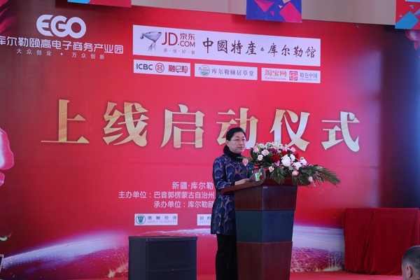 10月30日,庫爾勒頤高電子商務產業園京東中國特產?庫爾勒館、淘寶特色中國?巴州館、頤居草堂、工行融e購巴州館上線啟動儀式在庫爾勒頤高電子商務產業園展示中心順利舉行。庫爾勒市常委、副市長王曉輝,巴州商務局局長譚天等政府領導及京東集團西北分區公共事務部總監陳玉濤,頤高集團高級副總裁陳何樣等企業領導以及巴州電子商務協會、巴州浙江商會、中國移動、順豐速運等金融、工商聯、物流、企業等代表參加了這一儀式。