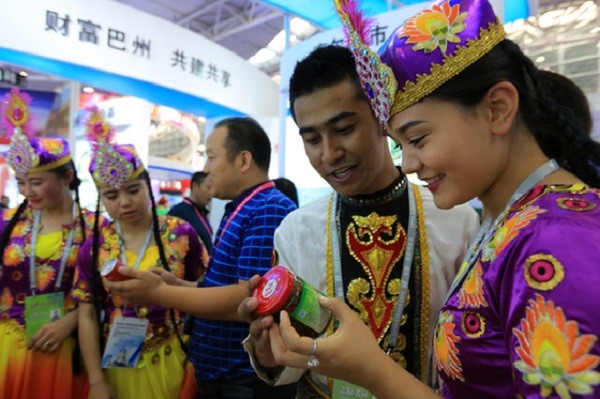 現場四個特色館進行推介活動,并現場邀請觀眾品嘗巴州當地特產,了解巴州當地文化特色,此外還展示了交易數據,各個環節吸引了眾多現場觀眾圍觀。