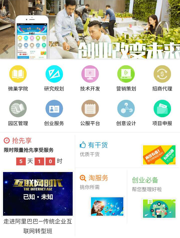 為扶持有志青年創業,創業超市中的微巢學院、技術開發、營銷策劃等十大產品,均是以培育企業核心競爭力,促使企業轉型升級,提高企業生存率,營造創業創新氛圍為目的,打造現代化企業、創新型企業所必需的精準化、高質量服務產品。