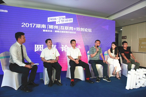 在圓桌論壇上,郴州市科技局副局長范輝平、郴州高新區總工程師范國強、英語趣配音創始人譚美紅、立元創投投資總監魏振興、摩拜湖南大區高級運營經理毛成林等嘉賓共同分享了雙創大環境下的改變與創新體驗,共論郴州創新發展。