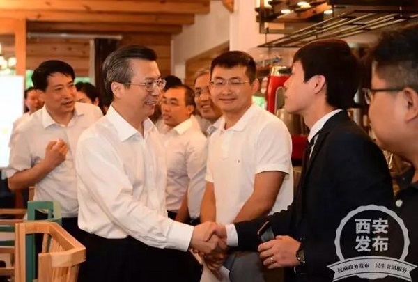 永康書記十分關心西安創業環境,在去往會議現場的途中,永康書記看到了一幅去創業咖啡座談會現場的指示圖,他稱贊道:“這個好!那就讓我們去創業聊吧,一起去喝咖啡吧!”