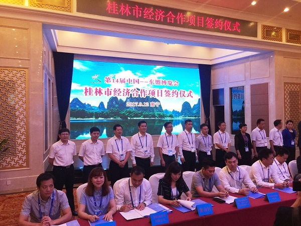 9月12日,第14屆中國—東盟博覽會、中國—東盟商務與投資峰會在南寧國際會展中心盛大開幕。在東博會分論壇——桂林市經濟合作大會上,浙江頤高新經濟科技發展公司副總裁戴金星與桂林市象山區副區長林莉簽訂桂林市新經濟城市會客廳項目。