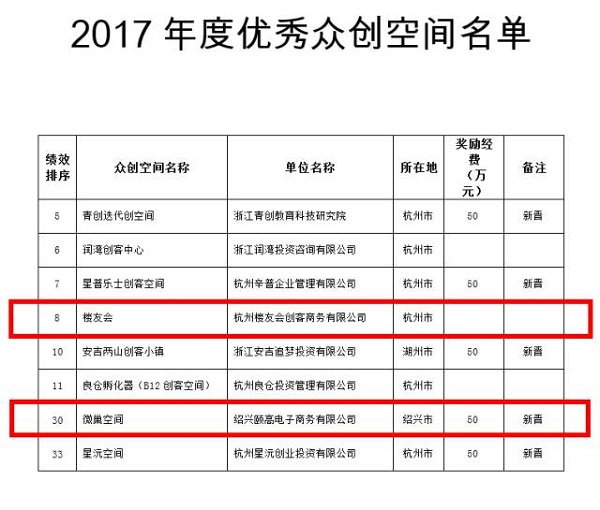 值得一提的是樓友會·杭州眾創空間是第二年榮獲省級優秀眾創空間稱號,樓友會?微巢空間則是首次進入。