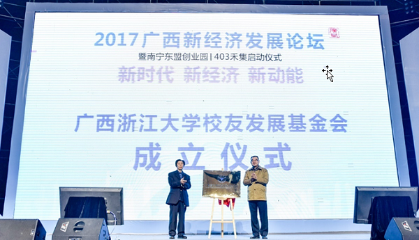 浙商入桂經商由來已久,已有較好的示范和基礎,而浙大系又是浙商中秉承“敢為人先”精神興商展業的中堅力量。當天,廣西浙江大學校友發展基金會正式成立。