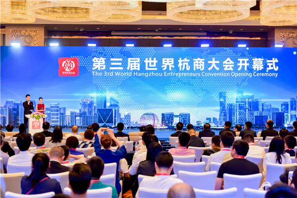 周江勇在大會致辭中提到,中國進入新時代,杭州承載新使命,杭商賦予新內涵。杭商是改革發展的中堅力量,也是杭州創新驅動的引領力量,他們不忘初心回報家鄉、支持杭州的發展,以企引企,為杭商群體感到驕傲。偉大的時代需要偉大的企業,杭州的機遇也是全體杭商的機遇,應高舉習近平新時代中國特色社會主義思想偉大旗幟,以新時代、新杭商為使命,繼續努力出發,不斷創新,以國際化視野推動世界經濟發展,不忘家國情懷,為國家社會的發展作出貢獻,感恩時代、回饋時代,將個人命運融入國家命運,為實現中華民族偉大復興,書寫新篇章。