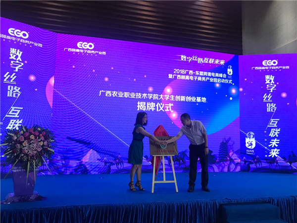 會上,廣西頤高電子商務產業園正式啟動,廣西頤高電子商務產業園正式揭牌成為廣西農業職業技術學院大學生創新創業基地和廣西頤高電子商務產業園科技成果轉化基地。