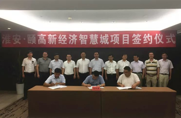 8月10日,淮安頤高新經濟智慧城項目正式簽約。淮安市淮安區委副書記、常務副區長顏復,副區長黃沛江,副區長李曉旭,各有關部門領導,頤高集團董事長翁南道,集團高級副總裁李軍輝,頤高電商園副總裁翁國明,頤高電商園總裁助理黃濤等出席了本次簽約儀式。簽約結束后,淮安區委書記徐子佳親切會見了翁南道一行。