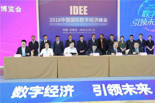 9月20日下午,2018國際數字經濟博覽會集中簽約儀式如期舉行,在河北省委常委、石家莊市委書記邢國輝等領導的共同見證下,頤高旗下產城科技發展公司與藁城區人民政府正式簽署藁城區頤高數字經濟創業園項目。