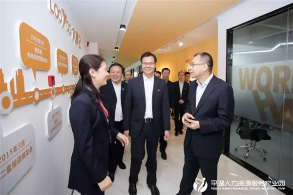 儀式結束后,與會嘉賓在頤高集團副總裁、樓友會創始人兼CEO李艷萍的帶領下參觀平湖人力資源服務產業園園區。