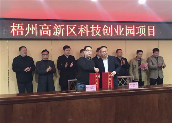 2019年1月21日,梧州互聯網+科技創業園項目正式簽約。梧州市副市長、梧州高新區黨工委書記姜云飛,梧州市高新區管委會主任覃汝勝,頤高集團副總裁、頤高新經濟總裁、頤居美麗鄉村董事長顧鵬,頤高新經濟副總裁陳教敏等出席了本次簽約儀式。頤高新經濟廣西區域拓展總監郝飛、梧州市高新區管委會主任覃汝勝代表雙方完成簽約。