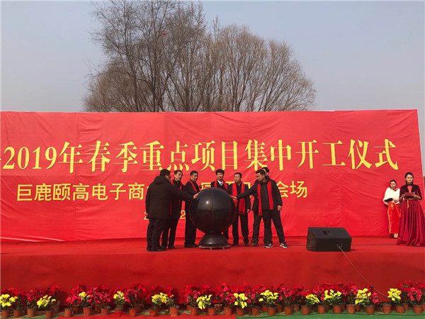 2月11日上午,巨鹿縣2019年春季重點項目集中開工儀式暨巨鹿頤高電子商務產業園項目奠基儀式成功舉辦。巨鹿縣委書記孫保祥、政府縣長鄭更須,頤高互聯網科技副總裁馮潤澤等領導及嘉賓出席開工儀式。