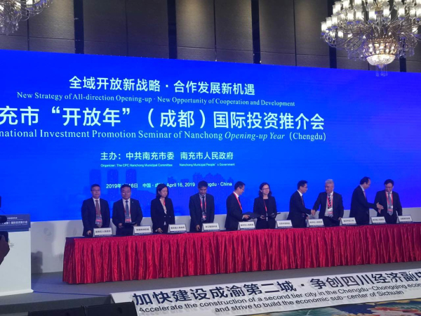 4月16日,在四川省委、省政府舉辦“2019中外知名企業四川行”系列活動之際,南充市“開放年”(成都)國際投資推介會在成都環球中心天堂洲際飯店舉行,包括頤高在內的來自境內外知名企業、商協會組織負責人共計300余人應邀參加投資推介會,共商發展、共享機遇、共繪未來。頤高新經濟副總裁戴金星出席本次會議,并作為代表與南充市蓬安縣人民政府簽署康養小鎮投資意向協議。