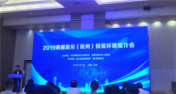 會議由中共南通市崇川區委員會、南通市崇川區人民政府主辦,崇川區投資促進區、崇川區商務局承辦。崇川區委副書記、區長錢鎖梅主持。南通市委常委、崇川區委書記劉浩致辭,崇川區委常委、副區長陳劍鋒進行推介演講。
