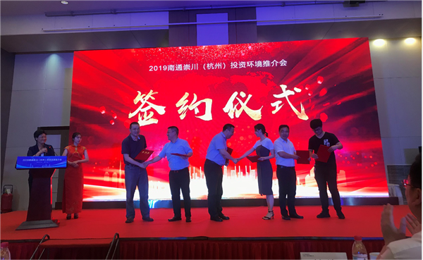 7月30日,2019南通崇川(杭州)投資環境推介會在杭州正式召開.億脈通CEO虞艇受邀出席并與南通崇川區簽訂南通市數字經濟產業園戰略合作協議。