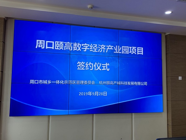 9月28日,周口數字經濟產業園項目簽約儀式成功舉行。頤高集團副總裁、頤高新經濟科技發展有限公司總裁顧鵬,頤高新經濟公司總裁助理劉存及河南省周口市城鄉一體化示范區主任張建黨等領導出席會議。