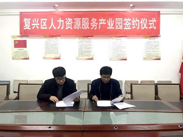 11月25日,復興區人力資源服務產業園項目正式簽約,復興區財政局副局長焦永民、復興新經濟產業園運營總監侯炳錕出席本次簽約儀式。