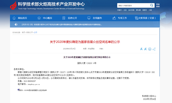 3月24日-3月30日,科技部火炬中心發布《2020年度擬確定為國家備案眾創空間名單的公示》,大理海東新區眾創空間成功入圍并通過公示,躋身“國家隊”,成為大理首家通過“國家級眾創空間”認證的科技型雙創平臺。