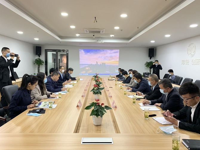 4月23日,山東省聊城市東阿縣委書記雷霞,縣委常委、辦公室主任賈連勇,縣婦聯主席范霞等一行考察頤高總部。頤高集團董事長翁南道、頤高產城科技公司副總裁杲波等接待并座談。