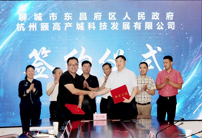 5月28日,頤高集團董事長翁南道帶隊赴山東聊城考察并與聊城東昌府區簽訂聊城頤高數字經濟產業園項目合作協議。聊城東昌府區委書記榮紅智、區長劉培國,東昌府區黨組成員、鳳凰工業園黨委書記李欽廣等領導出席簽約儀式。