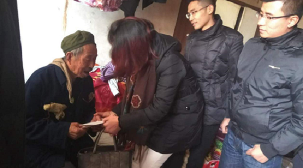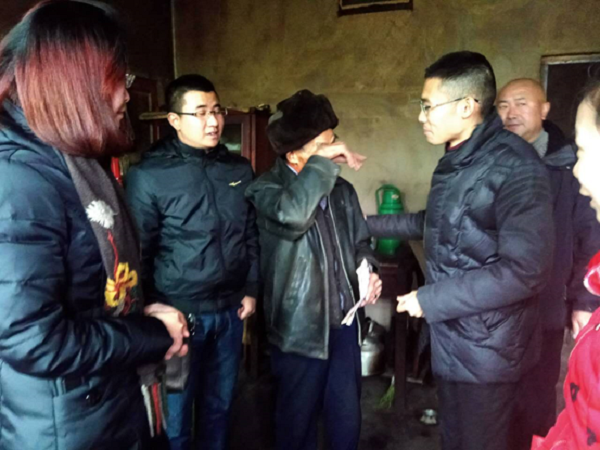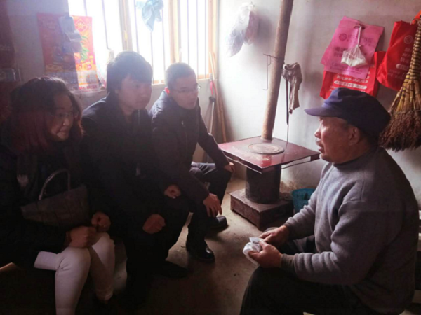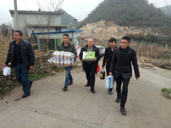 一大早,志愿者們將物料裝車,一行人驅車來到修文縣灑坪鎮,在村支書的帶領下,探望上寨村與蜈蚣橋村的12位空巢老人,為空巢老人送去棉被、大米、食用油、牛奶等暖冬物品,并和老人親切交談,了解當地空巢老人情況。