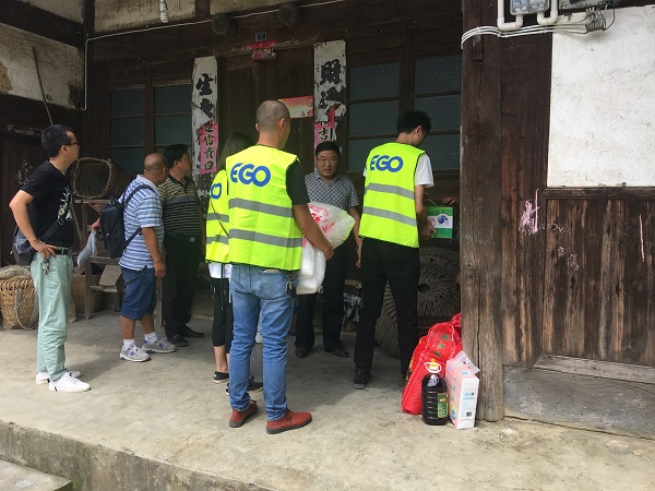 早上8點半,活動團隊集合,整裝待發后出發前往樂山鎮滸洋水村。公益團隊來到目的地,當地政府接待了我們,隨后一同前往幫扶對象家中,進行慰問和贈送物資。